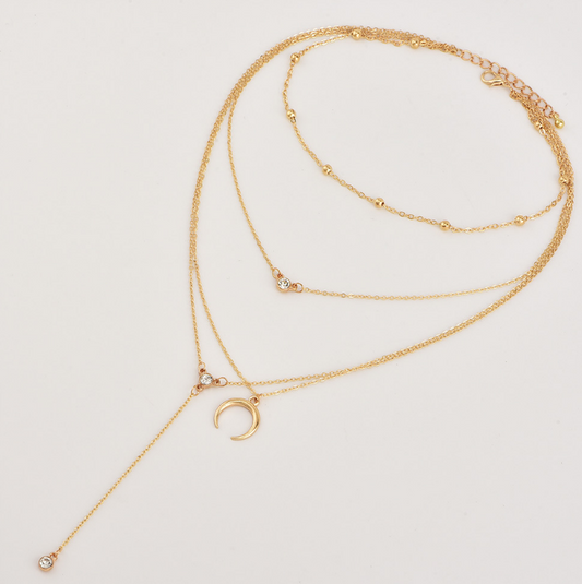Bead Chain Diamond Moon Pendant Multi-layer Necklace